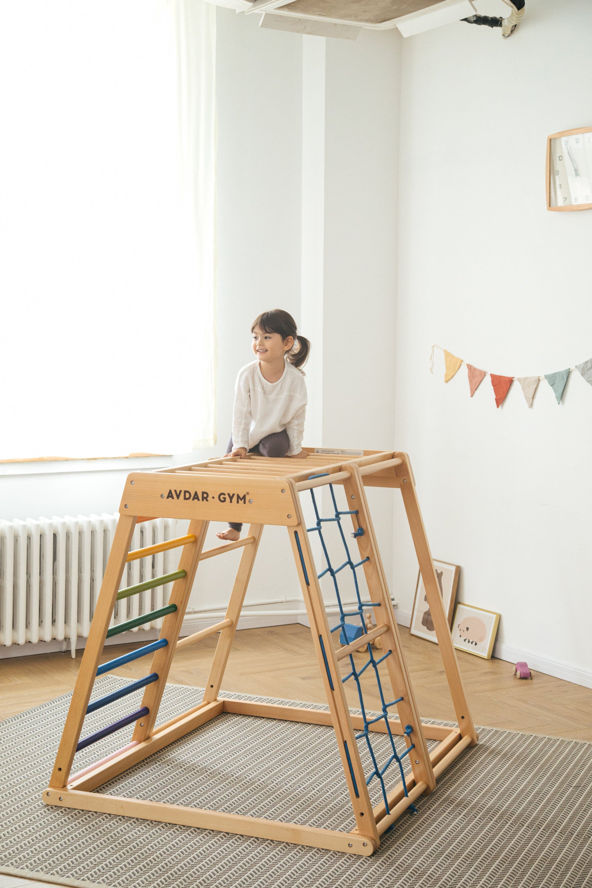 Our AVDAR Rainbow Climber Gym, an international bestseller, is crafted from sturdy beechwood and features a colorful rack that adds both playfulness and durability. We believe play is the foundation of a child’s growth, fostering their physical, mental, and emotional development. This gym is designed to encourage safe exploration and learning as your little ones climb and engage with their surroundings.
